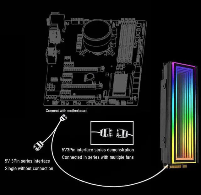 M. 2 2280 ARGB Hard Drive Heatsink Cooling M 2.2280 SSD Cooler 5V 3Pin Addressable RGB Sync Multi Mainboard Efficient Heat Dissipation SSD Radiator with Thermal Pad (Black)