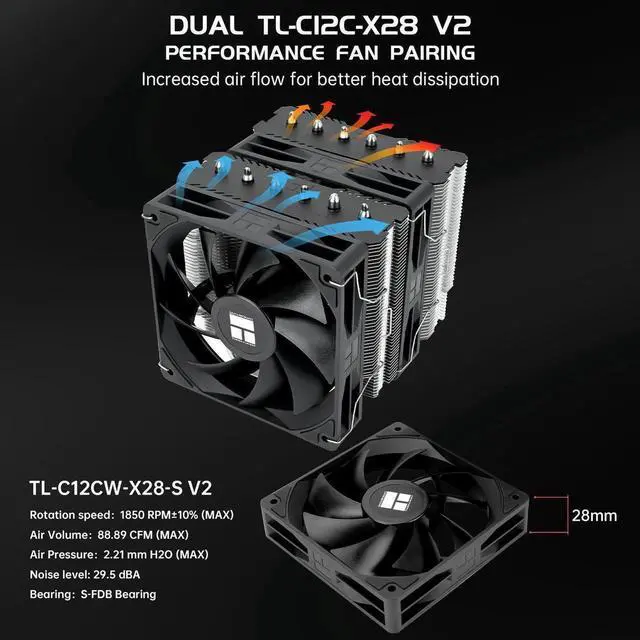 Material: Aluminium Fin, Pure CopperHeat Pipes and Base, Nickel Plated
