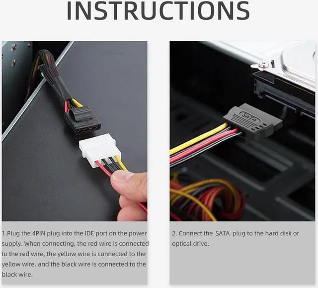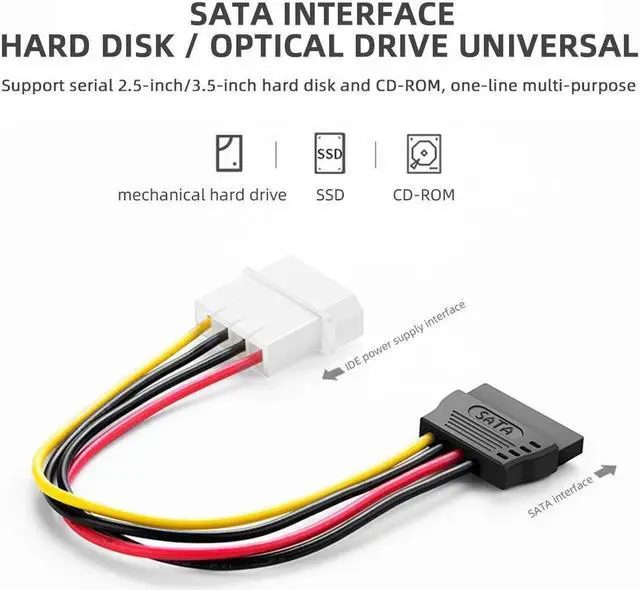 • SATA power cable used to convert / split standard PSU outlet (4 pin molex) to 1/2 SATA outlets Long service time and so durable.