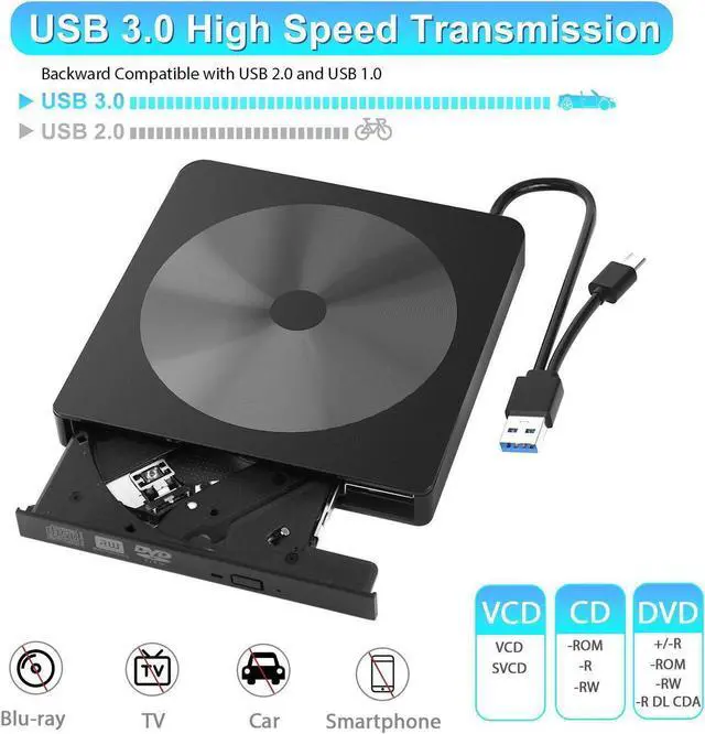 USB 3.0 USB-A USB-C External CD/DVD Drive for Laptop
