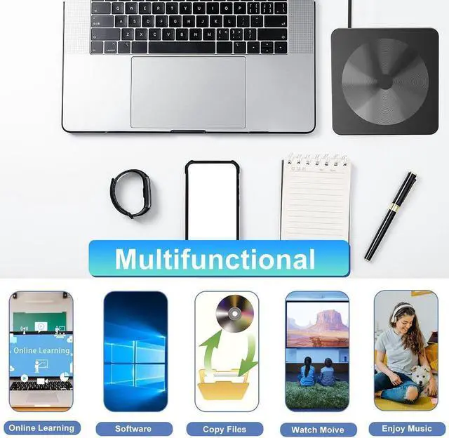 This disk drive is made of high-quality materials, shockproof, low noise and strong fault tolerance Intelligent. You can use this USB CD/DVD player to quietly read and write burned CD/DVD without stuttering and noise nor jammed discs.