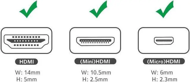 Connector: Standard HDMI Female (type A) *1, Mini HDMI Male *1 (type C), Micro HDMI (type D) *1;