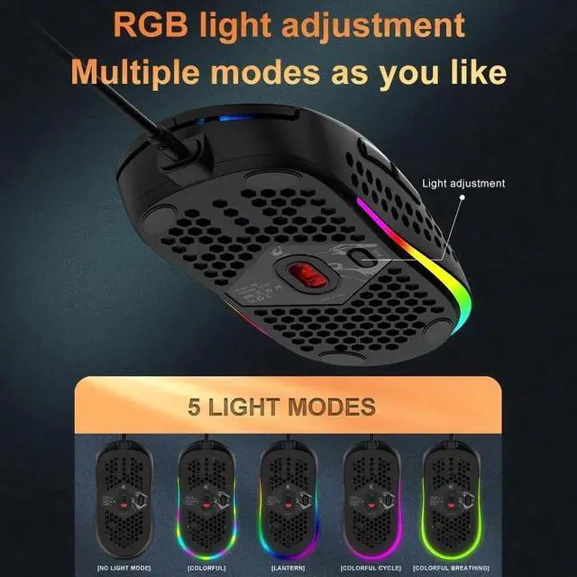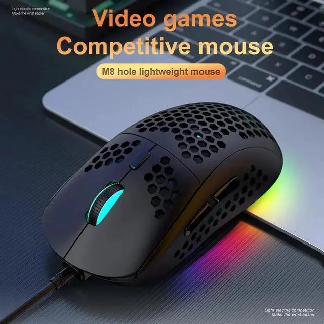 Ultralight Honeycomb Design: The M8 gaming mouse features an ultra-light honeycomb shell, making it comfortable for long gaming sessions and easy to maneuver.
