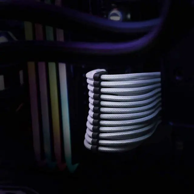 • Power Supply Sleeved Cable /24pin ATX /4+4pin EPS /8-pin PCI-E /6pin PCI-E PSU Extension Cable Kit 30cm Length with Combs, White