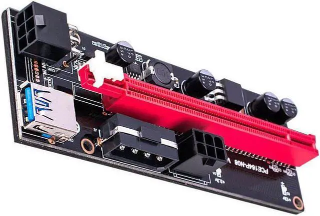 • PCI-E Riser 009S 1X 16x Extender PCI E USB Riser 009S Dual 6Pin Adapter Card SATA 15pin for BTC Miner r USB 3.0 Graphics Card