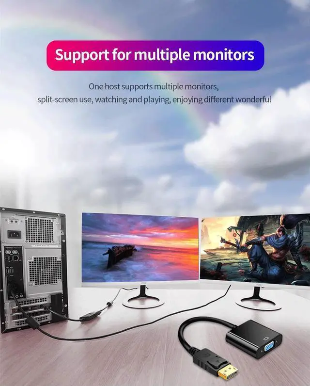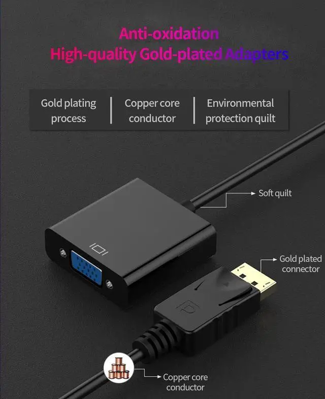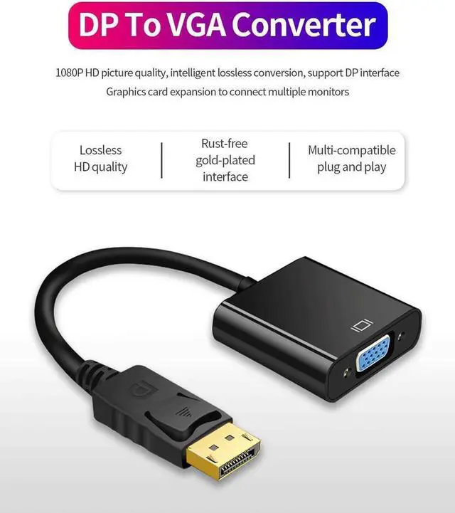 INCREDIBLE PERFORMANCE - The DisplayPort male to VGA female converter supports video resolutions up to 1920x1080@60Hz (1080p Full HD) / 1920x1200; Gold plated DP connector resists corrosion and abrasion and improves signal transmission performance; Molded strain relief increases cable durability