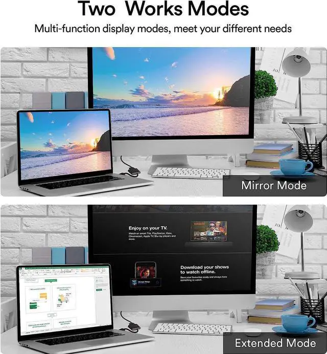 BROAD COMPATIBILITY - The DP to VGA dongle is compatible with DisplayPort equipped computer, pc, notebook, ultrabook, HP, Lenovo, Dell, ASUS; Configure monitor to Mirror Mode to duplicate primary display for video streaming or gaming; Configure monitor to Extend Mode to expand desktop area