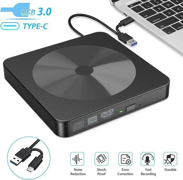 USB 3.0 USB-A USB-C External CD/DVD Drive for Laptop