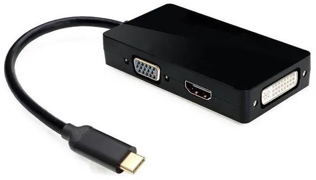 The Multiport USB Type C (Thunderbolt 3 Compatible) to HDMI 4K/DVI + VGA Multi Port Adapter Cable Converter provides you with more options, you can choose available HDMI, DVI, VGA to connect your computer to an external monitor.