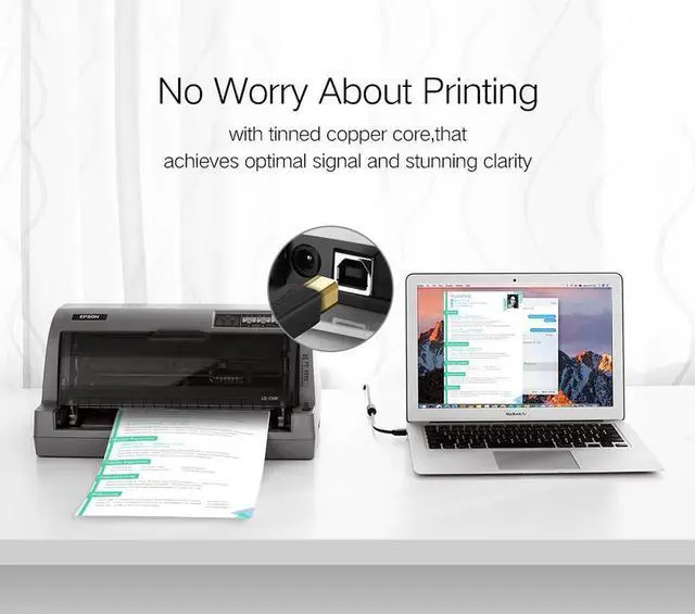 IDEAL PRINTER CABLE: USB 2.0 printer cable is ideal for connecting your scanner, printer, server, camera and other usb b devices to a laptop, computer (Mac/PC) or other USB-enabled device.