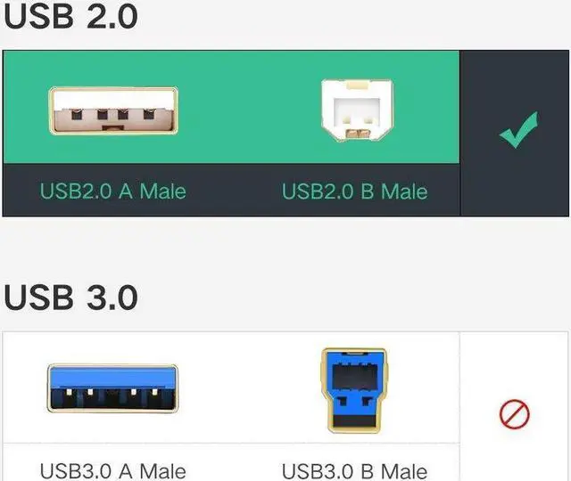 2.0 USB A Male to B Male Cable is the reliable choice for connecting devices with USB Type B Male ports such as printers, scanners, printer switch hubs, and other legacy devices that are economical to keep as a back-up.