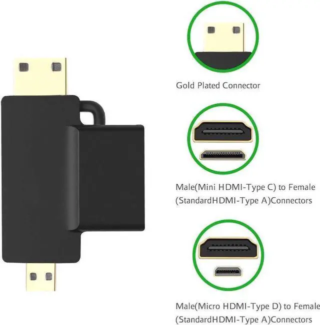 2Pack gold Plated 2-in-1 adapter offers you a convenient way to connect your smartphones, tablers, camcorder, digital camera with mini or micro HDMI to your HDTV or Display with your existing HDMI cable.
