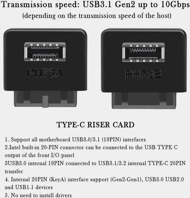 1. Support all motherboard USB 3.0 / 3.1 (19PIN) interfaces