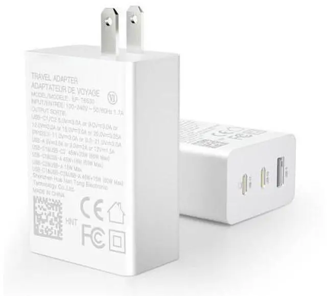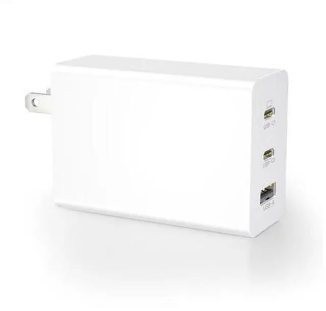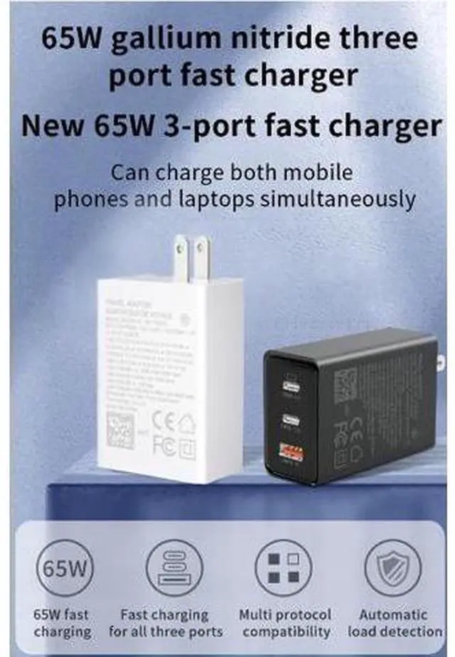 The 65W USB wall charger has 2 USB-C charging ports and a USB-A charging port, which can fast charge your phone, laptop, or other devices at the same time.