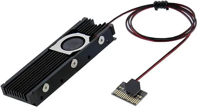 Highlights: Designed for Desktop PC - Specially designed for desktop computers, this M. 2 SSD heatsink compatible with M. 2 2280 SSD, perfectly fit for Samsung 850 EVO, 860 EVO, 960 EVO, 970 EVO, 950 PRO, 960 PRO, 970 PRO, etc. New upgrade fan cooling - Aluminum alloy - Groove design with high performance fan, dual powerful cooling system, with 15 ° C - 40 ° C cooling effect (depending on the environment), Improve your computer performance, perfect for gamers SATA power interface - Fan use 15PIN SATA power interface, stable and simple, 5V working voltage, good versatility and easy to install. Easy to Install and Operate - With double-sided clip design, 6 adjustable height screws, suitable for M. 2 SSD of various heights, stable installation, better protection of your M. 2 SSD. Fine Workmanship -