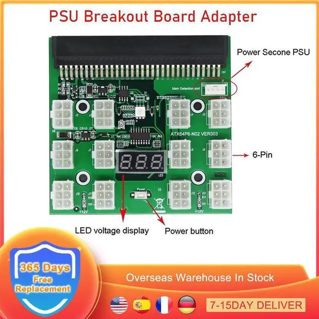 • 12 Ports Mining Power Supply Breakout Board Adapter 6Pin PSU GPU Graphics Card DPS-1200FB 1200QB BTC ETH Ethereum Bitcoin Miner