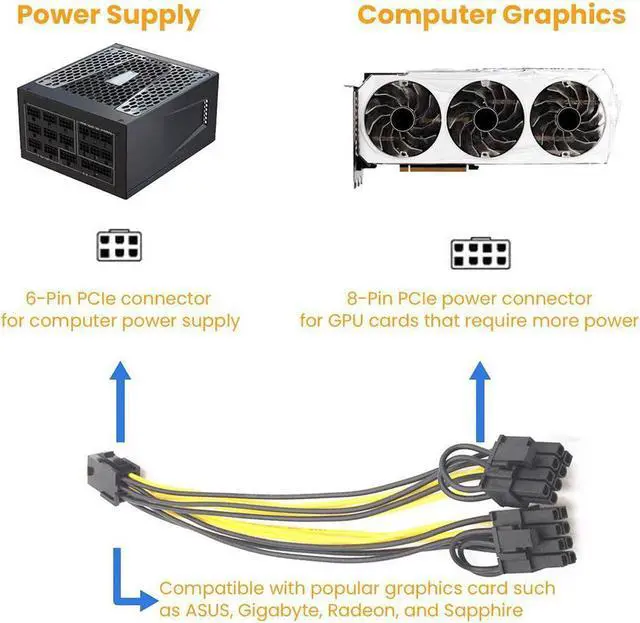• 10pcs 20cm PCIe 6-pin to Dual 6+2pin 8-pin GPU Graphics Card Power Splitter Cable 6Pin to Dual 8Pin for BTC ETH Mining Miner