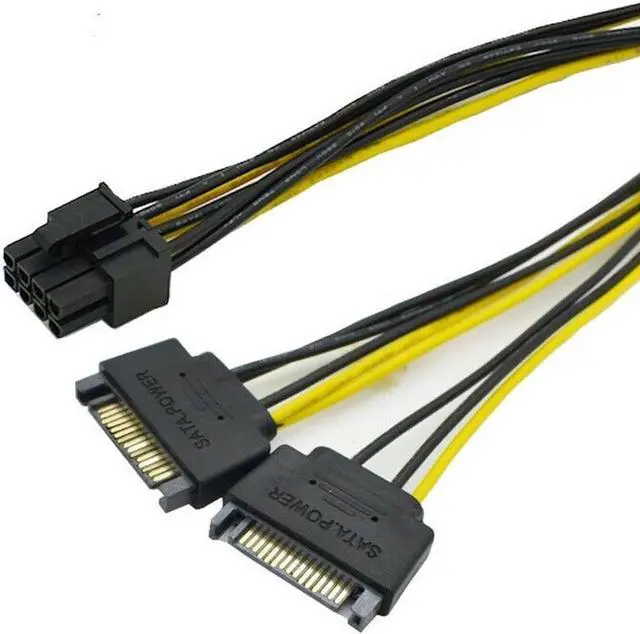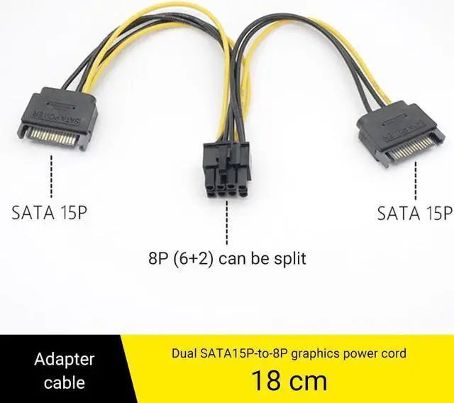 • 1PCS 18cm Dual SATA 15pin to 8pin Graphic Card Power Adapter Cable PCIE SATA Power Supply Cable for Bitcoin Miner Mining