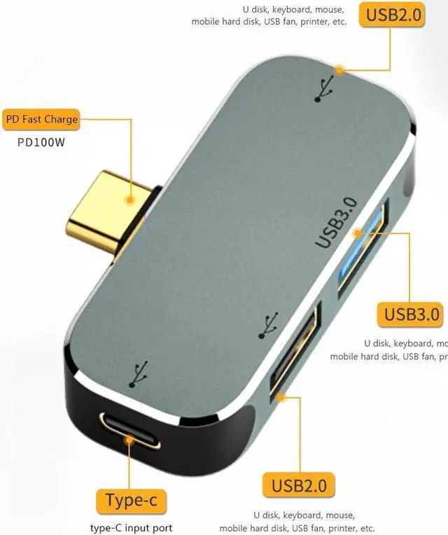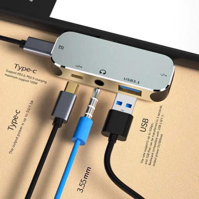 The product is applicable to various mobile phone / computer connection, USB peripheral charging and audio expansion. The Type-C input port is designed for plug and play regardless of positive and negative.