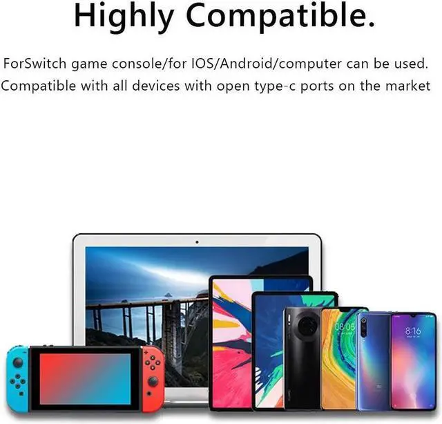 Highly compatible. For NS game console / Apple / Android / iPad / computer can be used. Compatible with all devices with open Type-C ports on the market