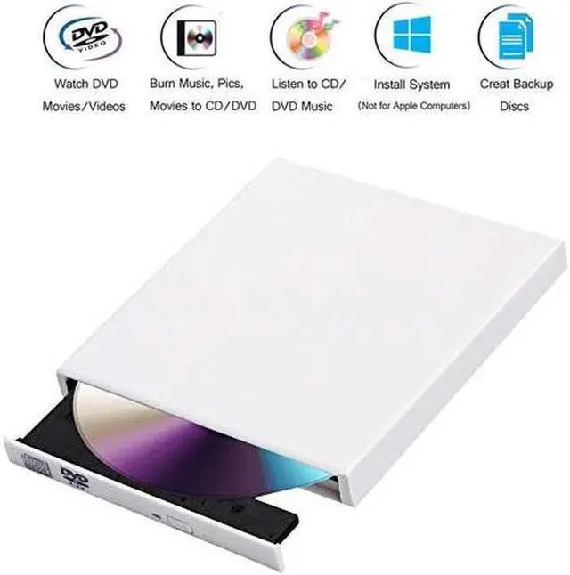 With portable and compact design, it is convenient for you to view DVD movies, listen to CD music, watch photos or images and copy music, video, or data to a CD (only CD).