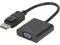 The DisplayPort male to VGA female converter supports video resolutions up to 1920x1080@60Hz (1080p Full HD) / 1920x1200; Gold plated DP connector resists corrosion and abrasion and improves signal transmission performance; Molded strain relief increases cable durability