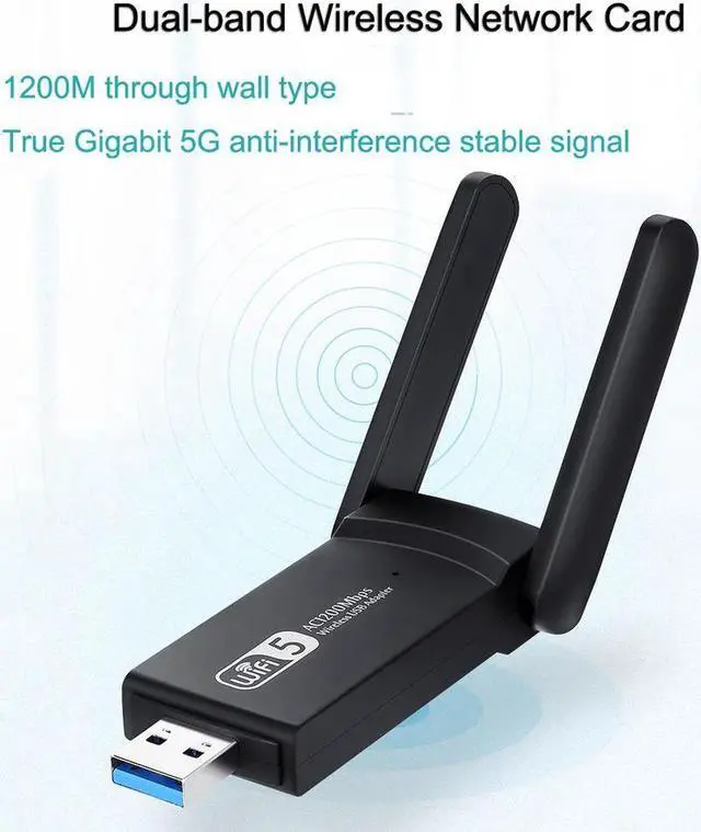 1200M 2.4G hz/ 5.8G hz Dual Brand Wireless Network Card USB 3.0 Wifi Adapter Network Card with External 2dBi Antenna for Desktop PC Laptop