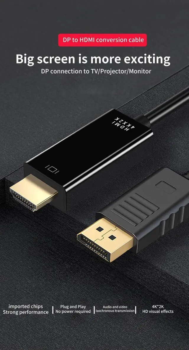 DisplayPort to HDMI cable can supports max 4K@60Hz resolution, (Backward supports 2K@120Hz, 1080P@120Hz), provides life like and fluent frames to your large display screen, giving you a realistic 3D screen experience.