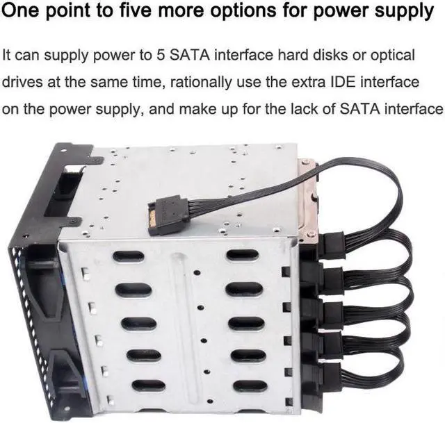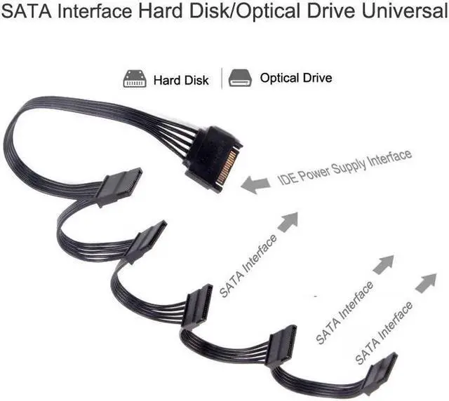 15Pin Male 1 to 5 SATA 15Pin Female Hard Drive Power Supply Splitter Cable HDD Cord for DIY PC Sever 15-pin Power 60CM