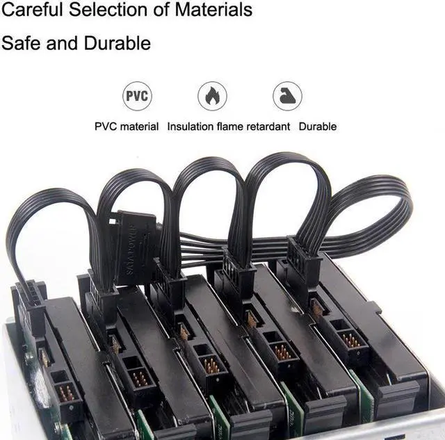Offer power to 5 pcs of hard disk or optical driver together by 15pin sata power