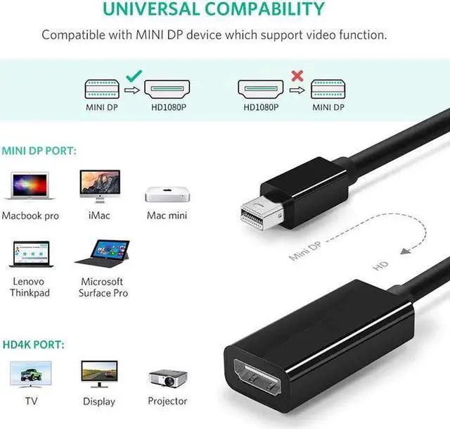Mini DP to HDMI, mini dp turn HDMI line, mini displayport adapter cable 1080P