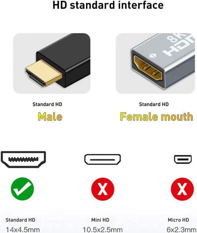 3. hdmi supports up to 8K@60HZ, 7680*4320 resolution, the resolution is four times that of 4K, and the resolution of human eyes is 4.3 times that of the human eye without feeling grainy at close range.