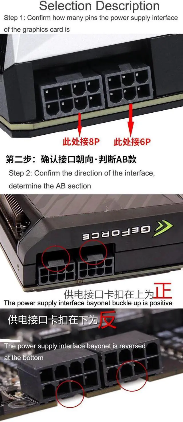 1. ATX 8-pin female tube to 8-pin male tube 180 degree power adapter, used for desktop graphics