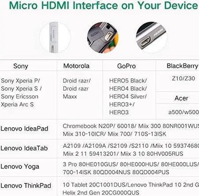 Note: Micro HDMI port is different from mini HDMI or Micro USB, please check your device's port before purchase.
