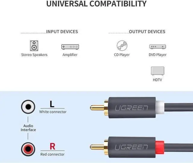 • 2RCA Male to 2RCA Male Stereo Audio Cable are good choices for home theater, HDTV, gaming consoles, hi-fi systems by amplifying sound quality for a more enjoyable audio experience. Gold plated connectors are for improved audio/video signal transfer and less signal interference. RCA is a great alternative for audio/video applications where newer connection types are not available.