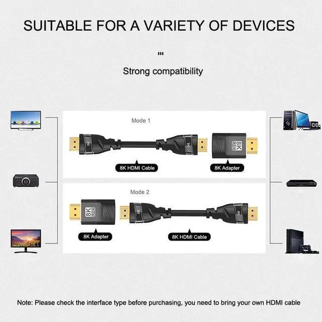 8K HDMI Male to Female Adapter HD HDMI Adapter Connected to TV Monitor Supports 8K Video Audio Output