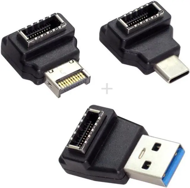 3pcs USB 3.1 Front Panel Header Female Type-E to Male Type-A & Type-C USB-C Motherboard Extension Data Angled Adapter
