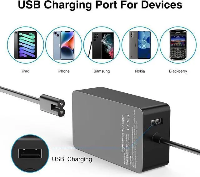 Surface Charger Input: 100-240V 50/60 Hz; Output: 15V-4A 65W