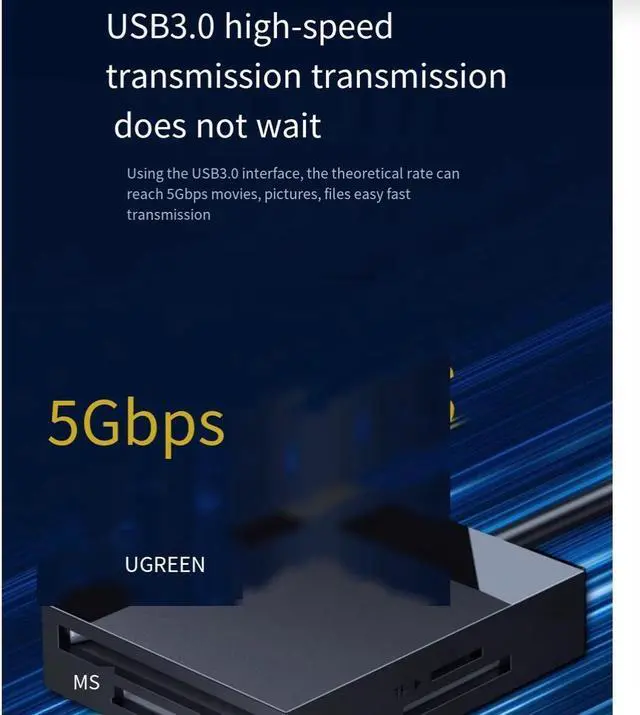 UGREEN high-speed card reader USB3.0 with Type-C interface four-in-one multi-function SD/CF/TF/MS card Multi-function Typ suitable for car otg camera memory SLR camera truck mobile phone computer 0.5
