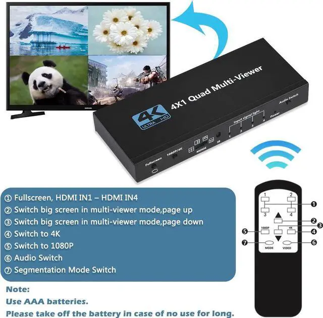 Supports 4 HDMI input, 1 HDMI output.