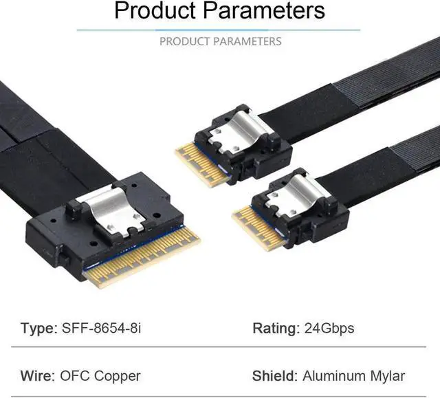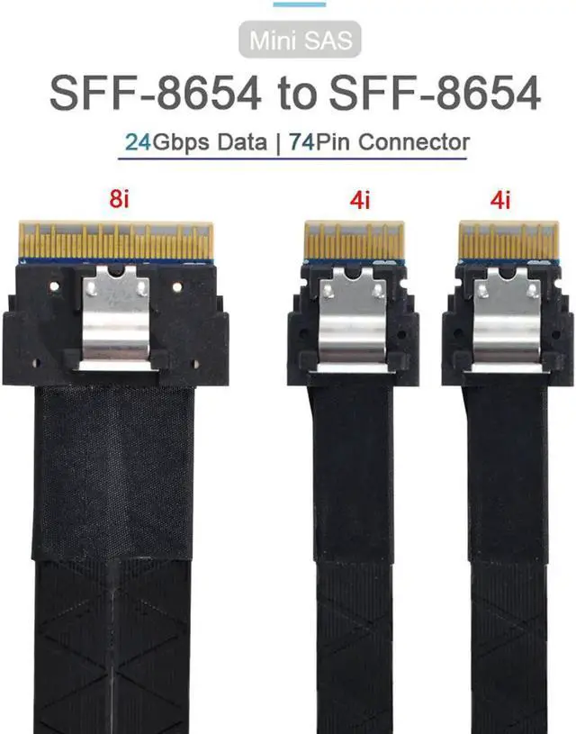 • SFF-8654 8i 74Pin Male to Dual SFF-8654 4i 38Pin Male PCI-E Ultraport Slimline SAS Slim 4.0 Cable 40cm PCI-Express