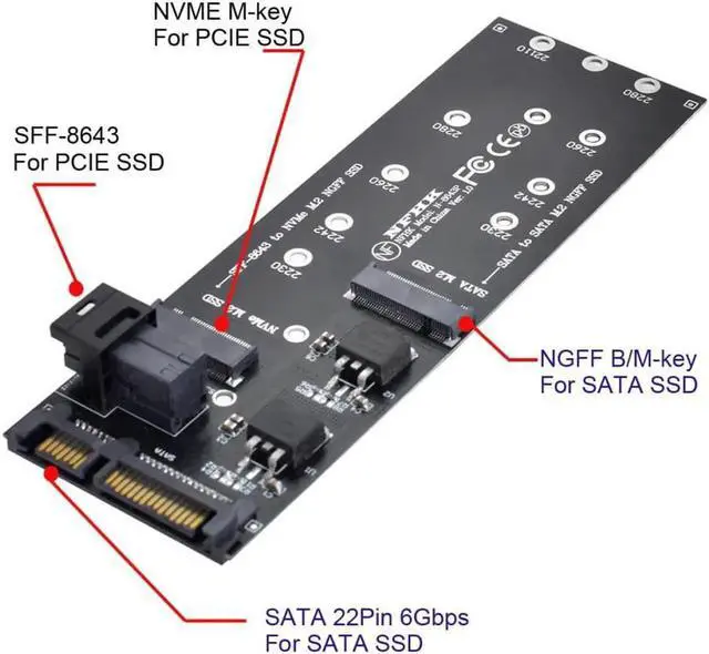 22Pin SATA Adapter SFF-8643 to M. 2 U2 Kit NGFF M-Key to Slimline SAS NVME PCIe SSD SATA SSD Adapter for Mainboard