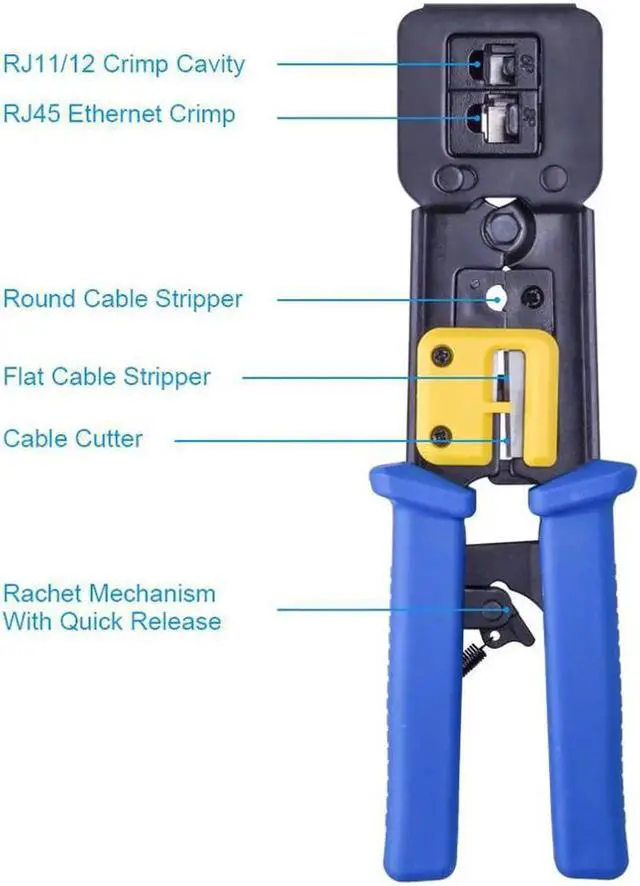 • RJ45 RJ12 Crimp Tool 6P/8P Multi-function Cable Cutter Pass Through Crimper Ethernet Cable Connector Crimping Tool