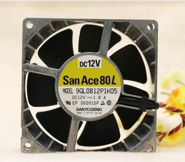 Aomoproing 1pcs 9GL0812P1K05 8038 80mm 80 * 80 * 38MM high temperature fan metal cooling fan 12V 1.8A