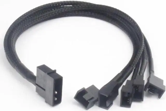 • Aomoproing 30cm 4pin IDE Molex to 4-Port Black Sleeved Cooler Cooling 3Pin 4Pin Fan Splitter Power Cable Environmental Connector Cables