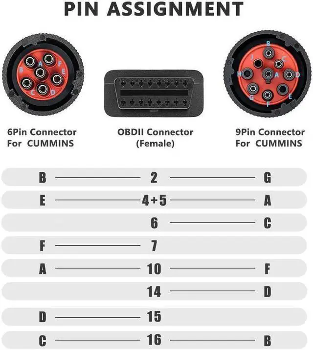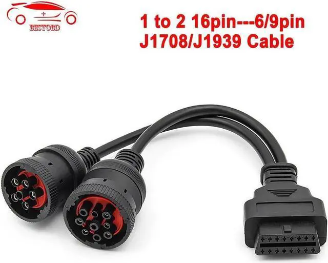 • 6Pin 9Pin Cable OBD2 Truck Diagnostic Tool 16Pin J1708 J1939 Connector OBD to OBD2 for Cummins for Deutsch for Cat Truck