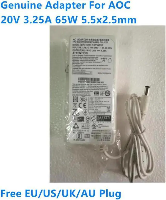 • ADPC2065 20V 3.25V 65W AC Adapter For AOC Monitor AG322FCX U2879VF 280LM00004 315LM00019 E2272PWUT/BS Power Charger