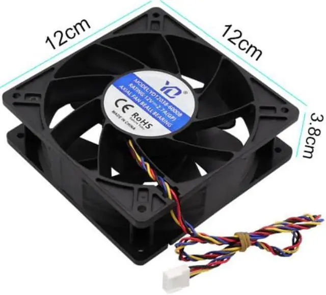 Aomoproing 12CM 2.7A 12308 25dB-A High Precision Double Ball Bearing Server Cooling Fan for Bitcoin Miner