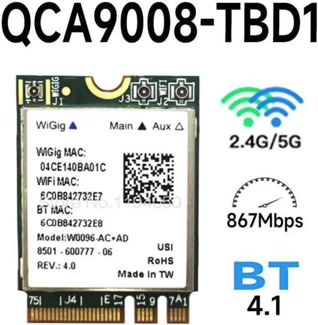 • Atheros QCA9008-TBD1 Wireless AC + AD Bluetooth 4.1 WIFI Module 2.4G / 5G Dual Band WIFI Card 867Mbps QCA9008 WIFI CARD