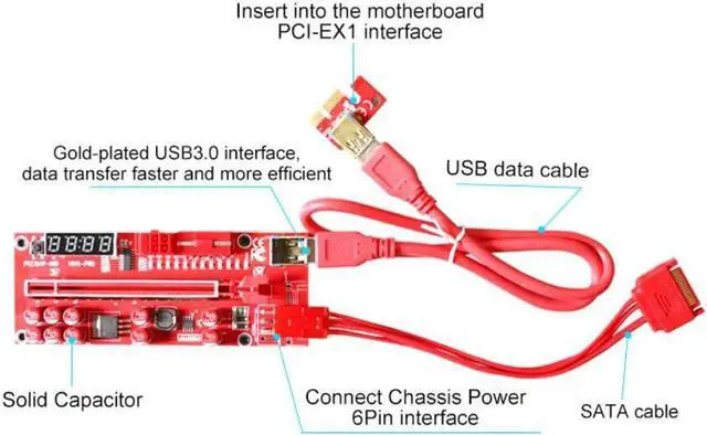 • Aomoproing V014 PRO USB3.0 PCI-E Riser Card Extender Express Rabbet GPU 16X Extender Riser Adapter Card SATA 6 Pin Extension Power Cable